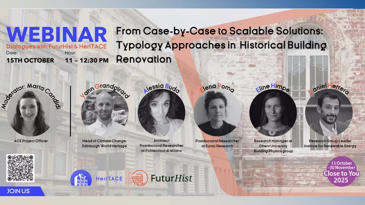 On October 15, 2025, the HeriTACE and FuturHist projects hosted the first episode of the webinar series “Future-Proofing Historic Buildings for the Clean Energy Transition: Dialogues with FuturHist & HeriTACE.” The session brought together 75 participants, including architects, designers, researchers, and energy retrofit specialists from both EU and non-EU countries.
