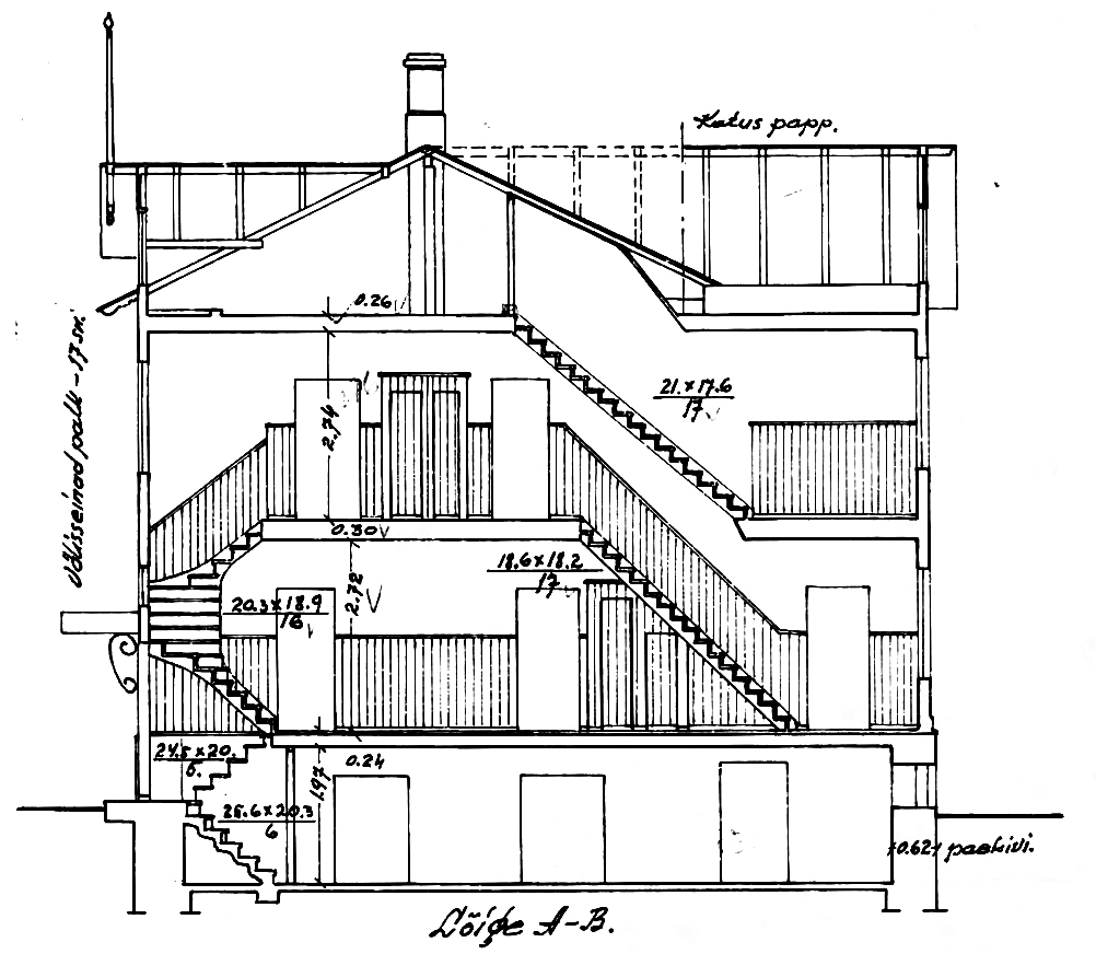 This archetype can be divided into 2 subtypes: Lender and Tallinn apartment buildings. Lender types (late 1800s ‒ early 1900s) were designed for industrial workers and peasants moving to cities. These two-story buildings featured horizontal logs, finished with horizontal boarding, and were organised with 4 to 8 one-room apartments. The characteristic is the axis: normally, the central axis corresponds to the front door, and buildings could have 3, 5 or 7 additional axes, to respect the symmetry. The wooden apartment buildings of Tallinn type, built during the 1920s-30s, featured brick stairwells and housed apartments of different sizes and with multiple living rooms and modern amenities (like a water closet). The Tallinn type consists of at least two stories with an additional attic under the roof, and the facade could be finished with wooden boarding or plaster. Case Study: Koidu, Pilve, Komeedi