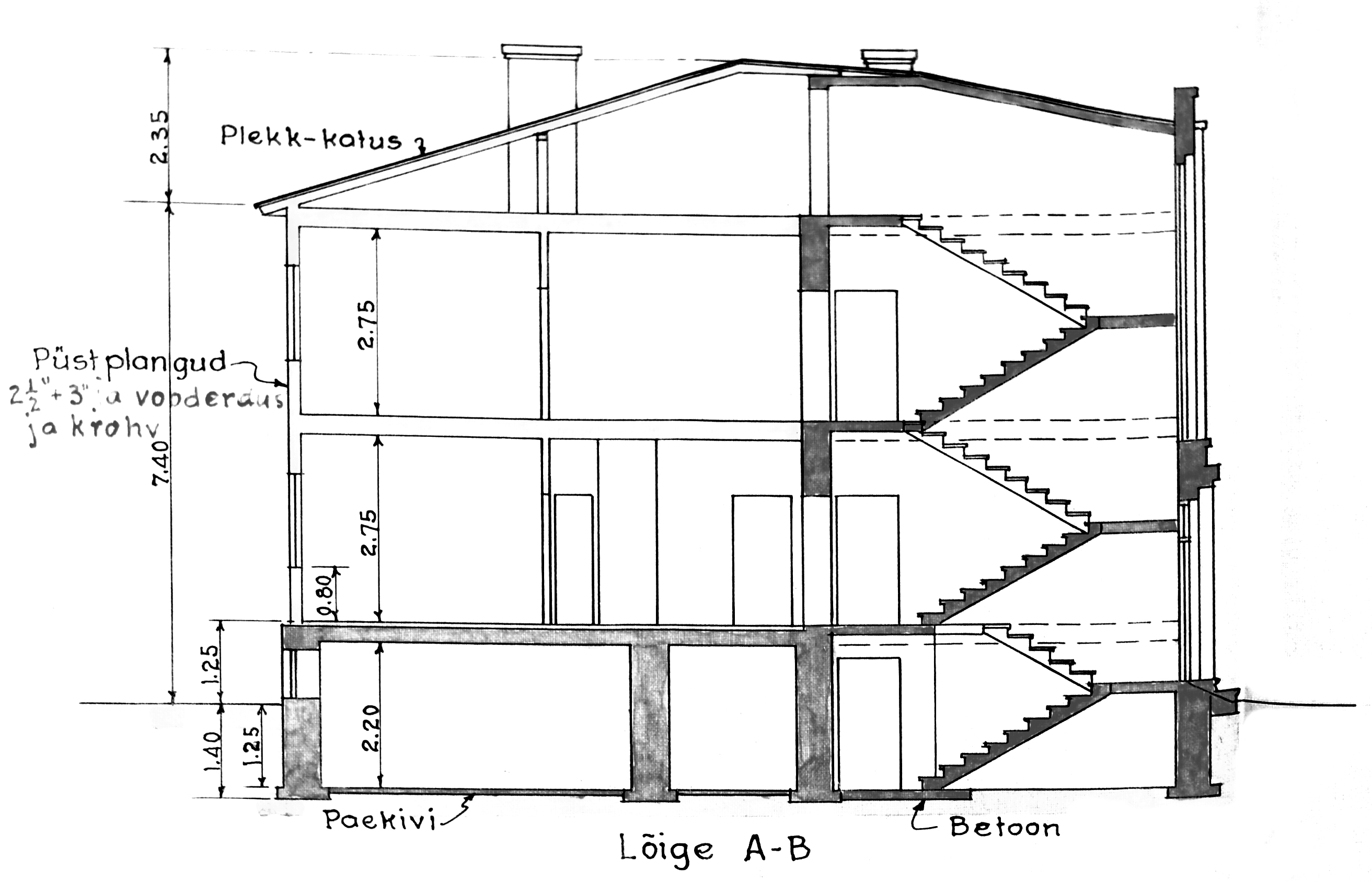 In Estonia, wooden heritage apartment buildings from the late 1800s to 1945, alongside the masonry heritage apartment buildings, are the two archetypes defined for the HeritACE project. The case studies are taken from the neighbourhood of Uus-Maailm, one of the eight milieu protection areas in the city of Tallinn. Uus-Maailm – or New World – used to be a meadow until the middle of the 19th century. Most of the wooden apartment buildings were built between 1890 and 1939, and brick apartment buildings in the 1950s–60s. It started to develop as a residential area when the need for workers' housing rose. The first Archetype is the wooden heritage townhouses (Lender and Tallinn type) that started to appear after the First World War. Wooden buildings cover ca 5% of the whole building stock net area and over 50% of the building stock built before 1945. The second type is masonry heritage apartment buildings built between 1945 and 1955 (Stalinist style).